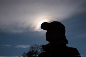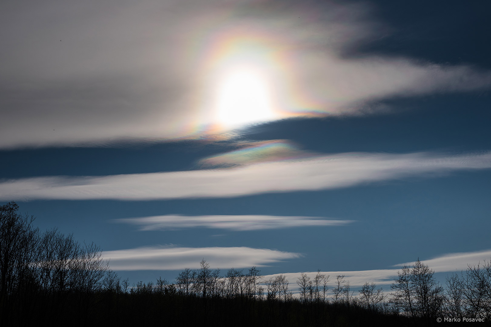 Ovaj krasno izražen vijenac snimio sam jučer popodne u brdima Bilogore nedaleko od Koprivnice. Oblak je cirokumulus ili visoki altokumulus, ili kombinacija tog dvoje. Takvi su visoki oblaci skloni ovakvim optičkim fenomenima, kao što smo vidjeli prošle godine na rubu mlazne struje.