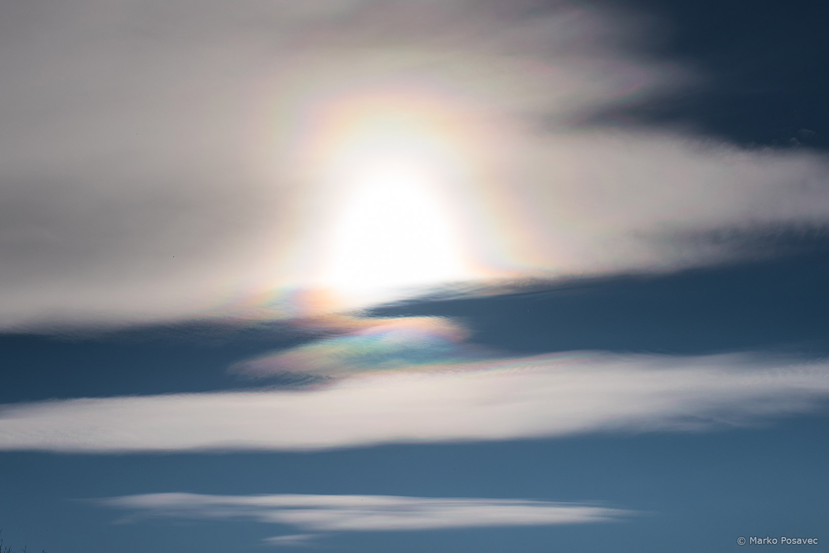 Kasnije, kako se oblak nastavljao razvijati, od vijenca je ostao samo približan obris. Irizacija je preuzela glavnu riječ: