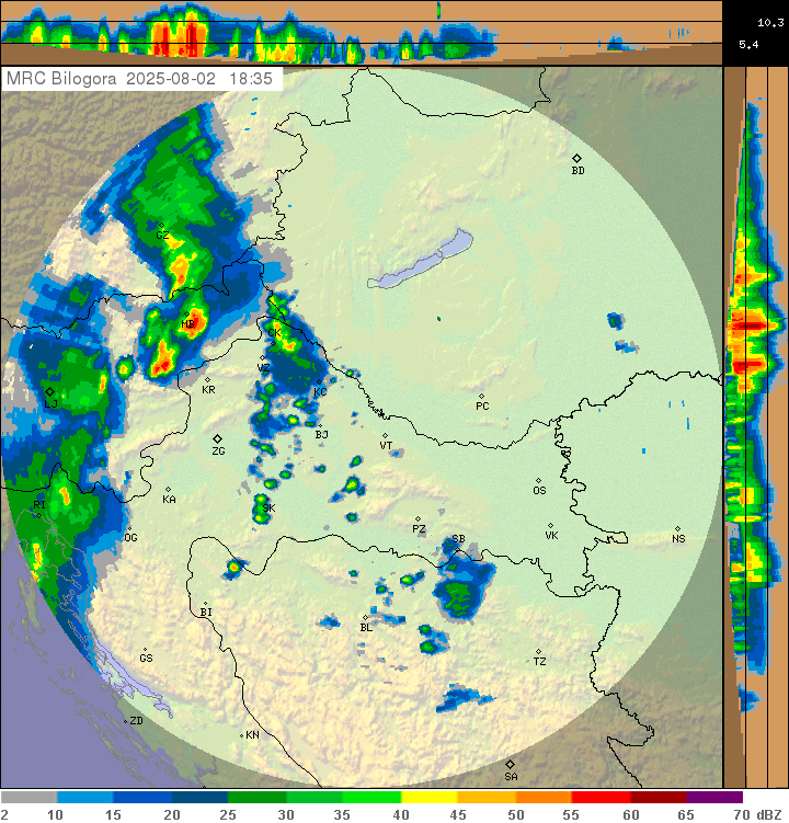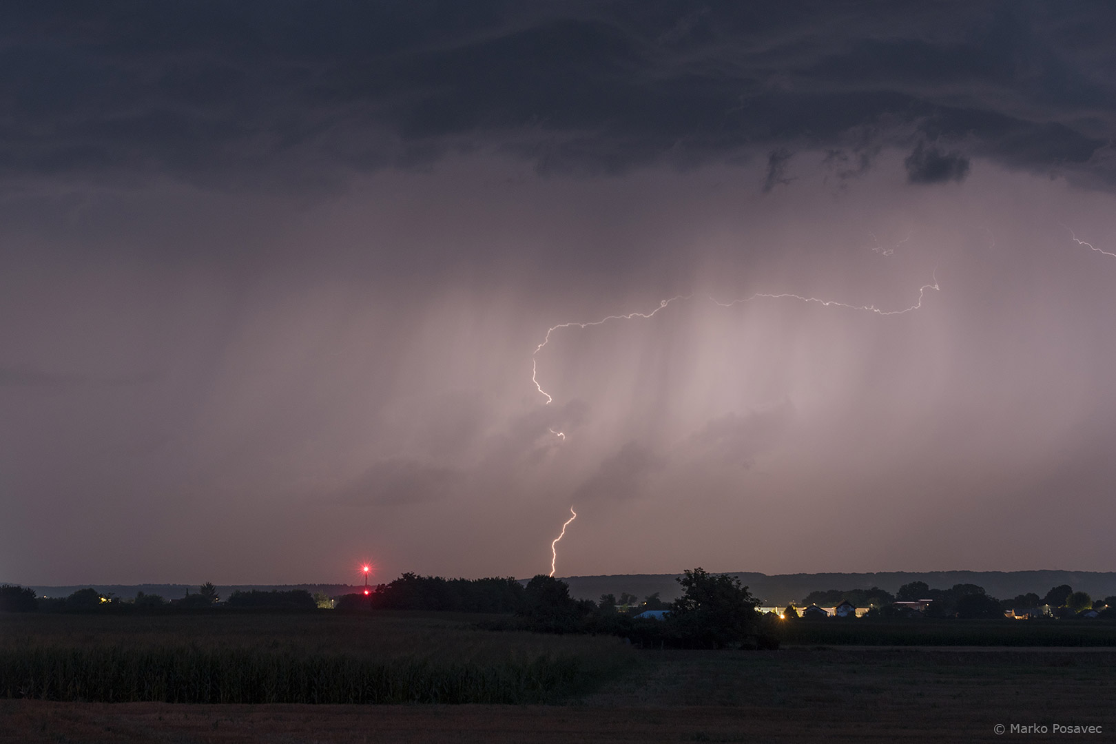 Razvoj grmljavinskih oblaka počeo je jugozapadno od Koprivnice negdje iza 18 sati. Mali pljuščić s rijetkom grmljavinom raširio se u solidan oblak velikog odraza na radaru. Krupnije tuče nije bilo, na Bilogori su kratko padale sitne ledene kuglice. Prvu munju dana uhvatio sam, po običaju, s balkona.