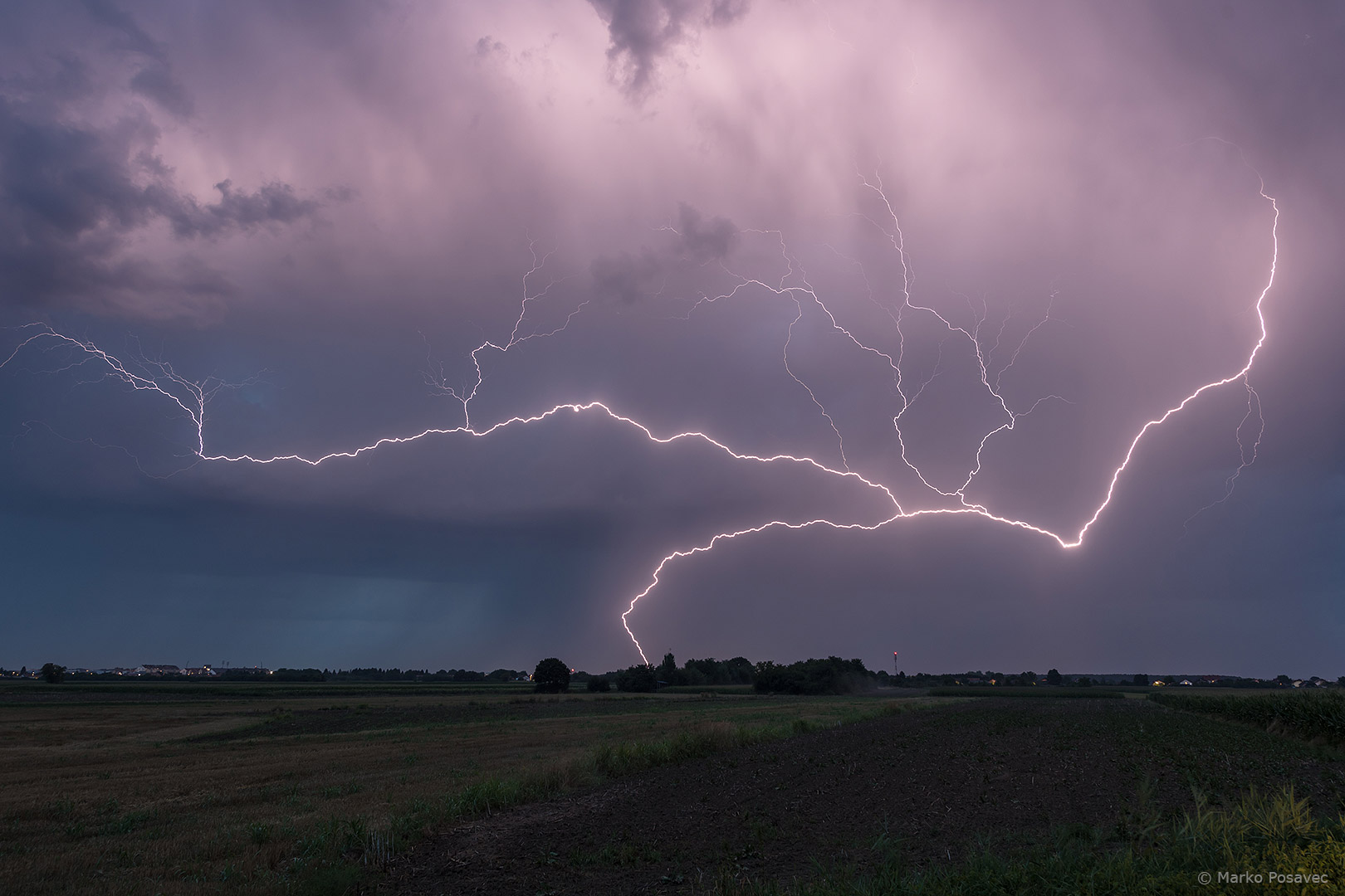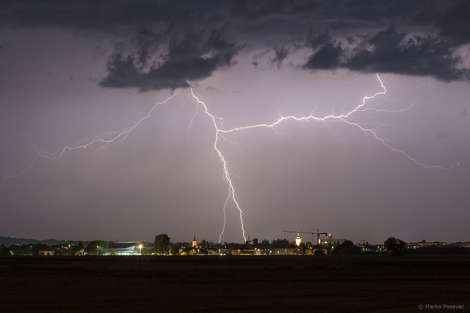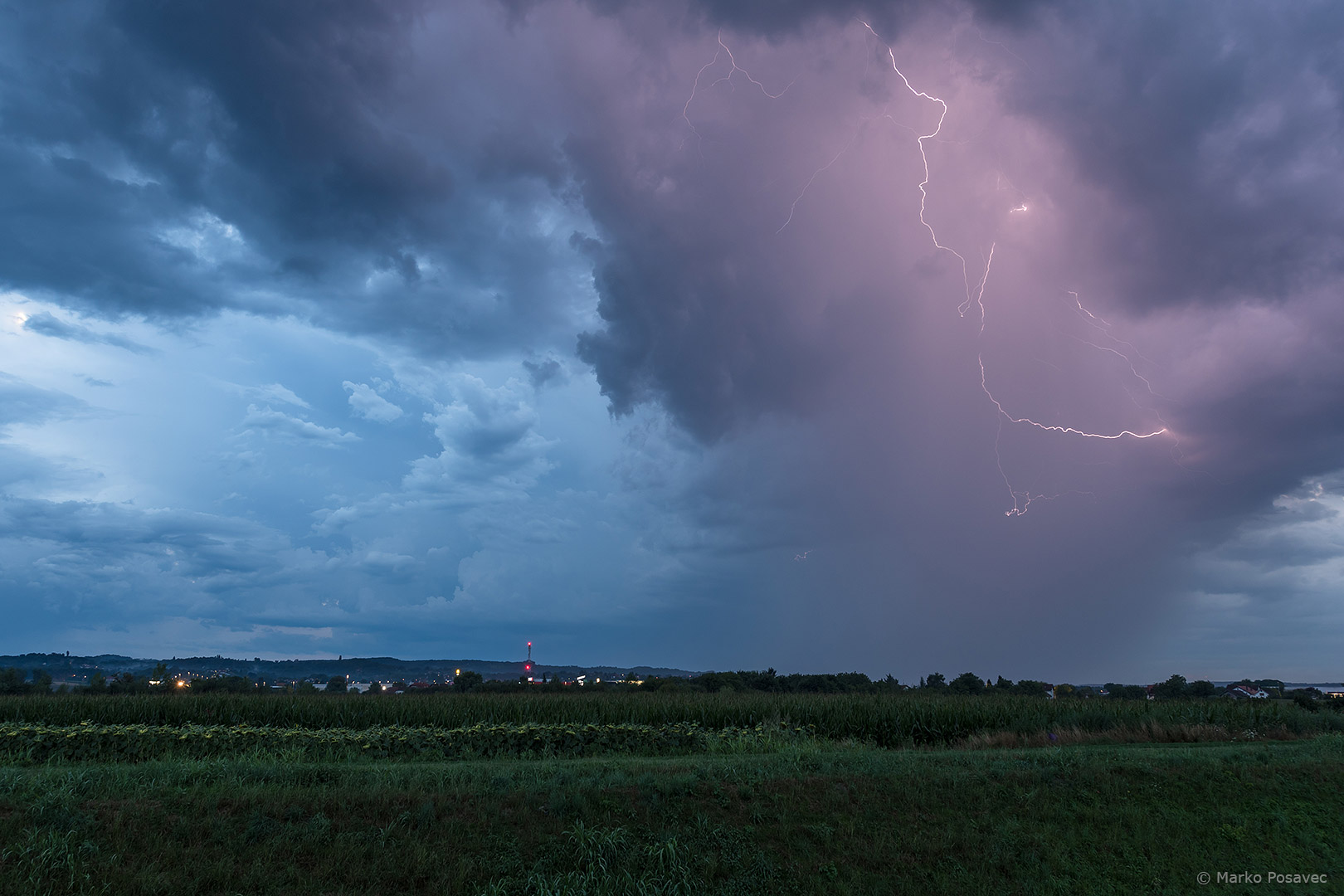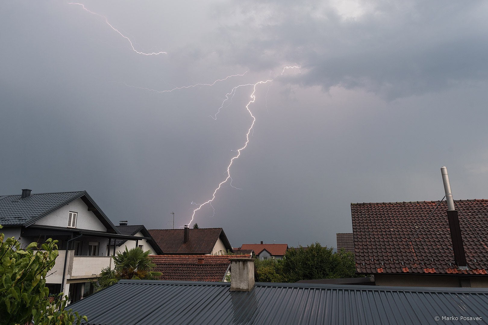 S druge strane već je prilazio novi. Bio je malen, s jasno vidljivom oborinskom zavjesom u kojoj su plesale munje. Brzo me zahvatio njegov pljusak pa sam morao pobjeći istočnije. Za to je vrijeme prasnuo nekoliko izuzetnih munja ravno po gradu. Nakon toga se primirio, ali dao mi je jednu ljepoticu za pozdrav.