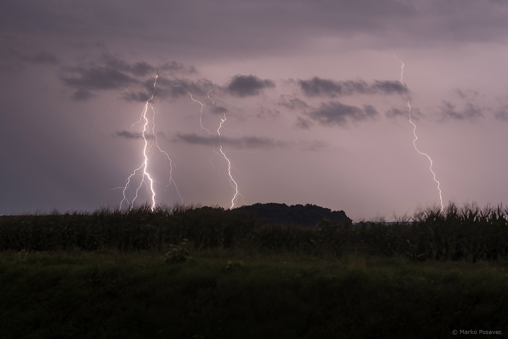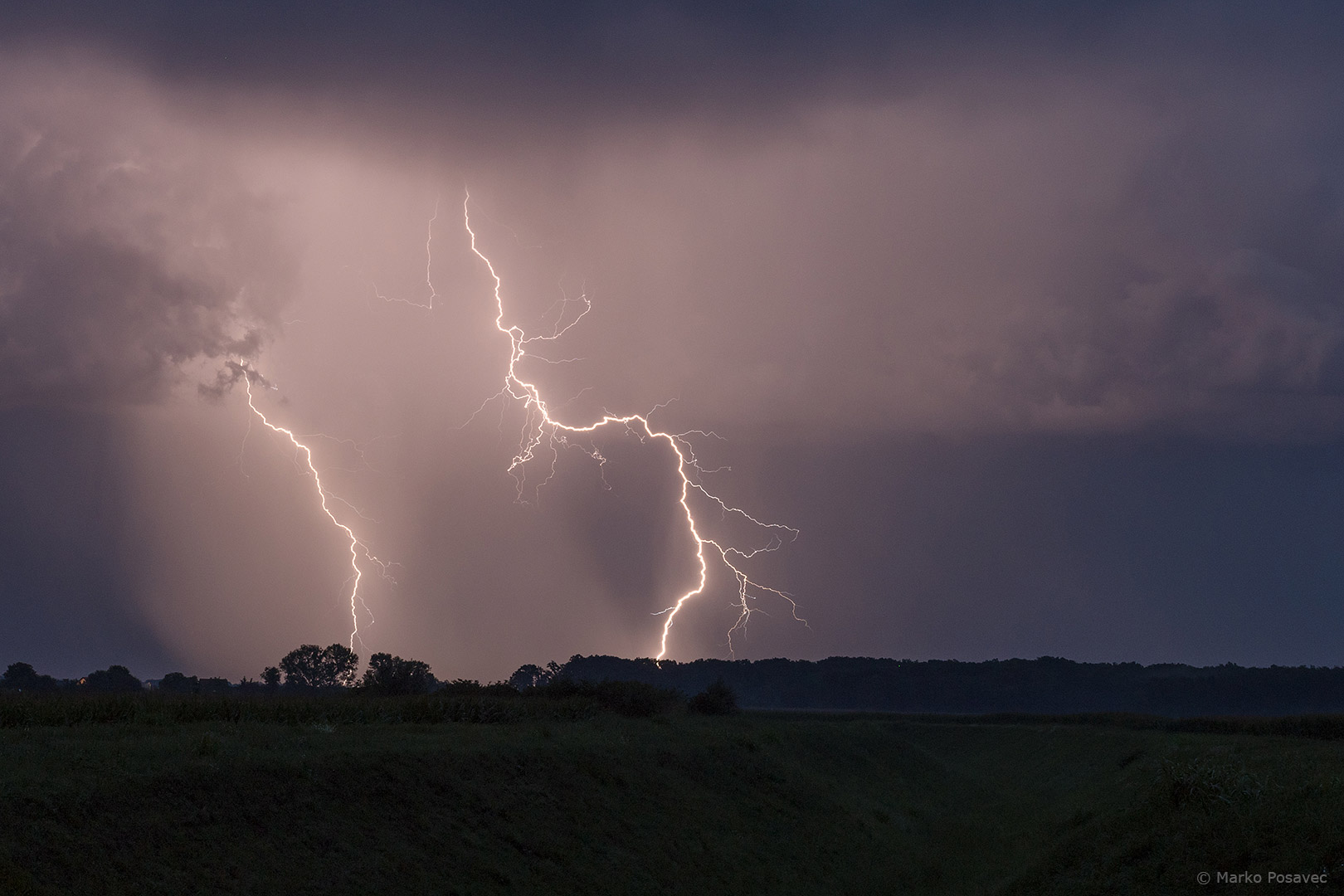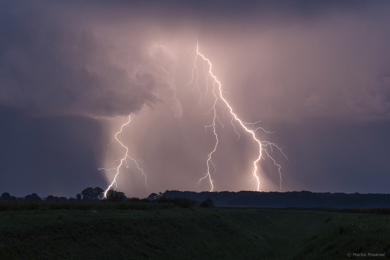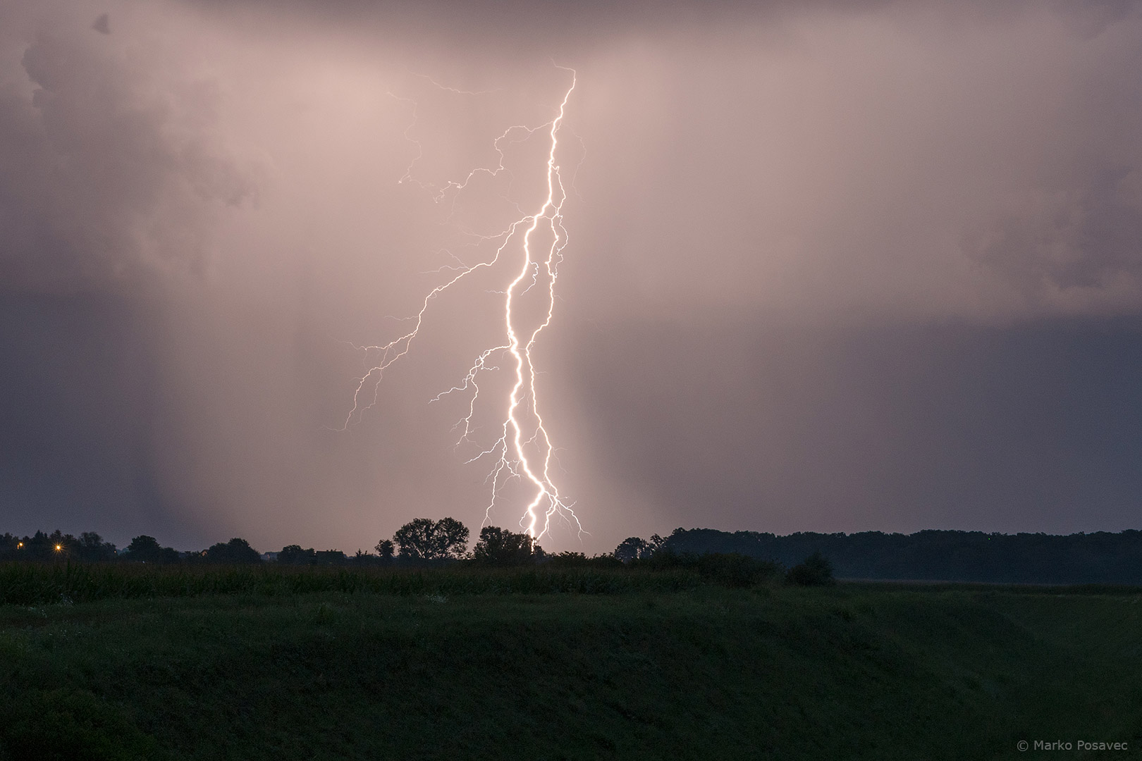 S druge strane već je prilazio novi. Bio je malen, s jasno vidljivom oborinskom zavjesom u kojoj su plesale munje. Brzo me zahvatio njegov pljusak pa sam morao pobjeći istočnije. Za to je vrijeme prasnuo nekoliko izuzetnih munja ravno po gradu. Nakon toga se primirio, ali dao mi je jednu ljepoticu za pozdrav.