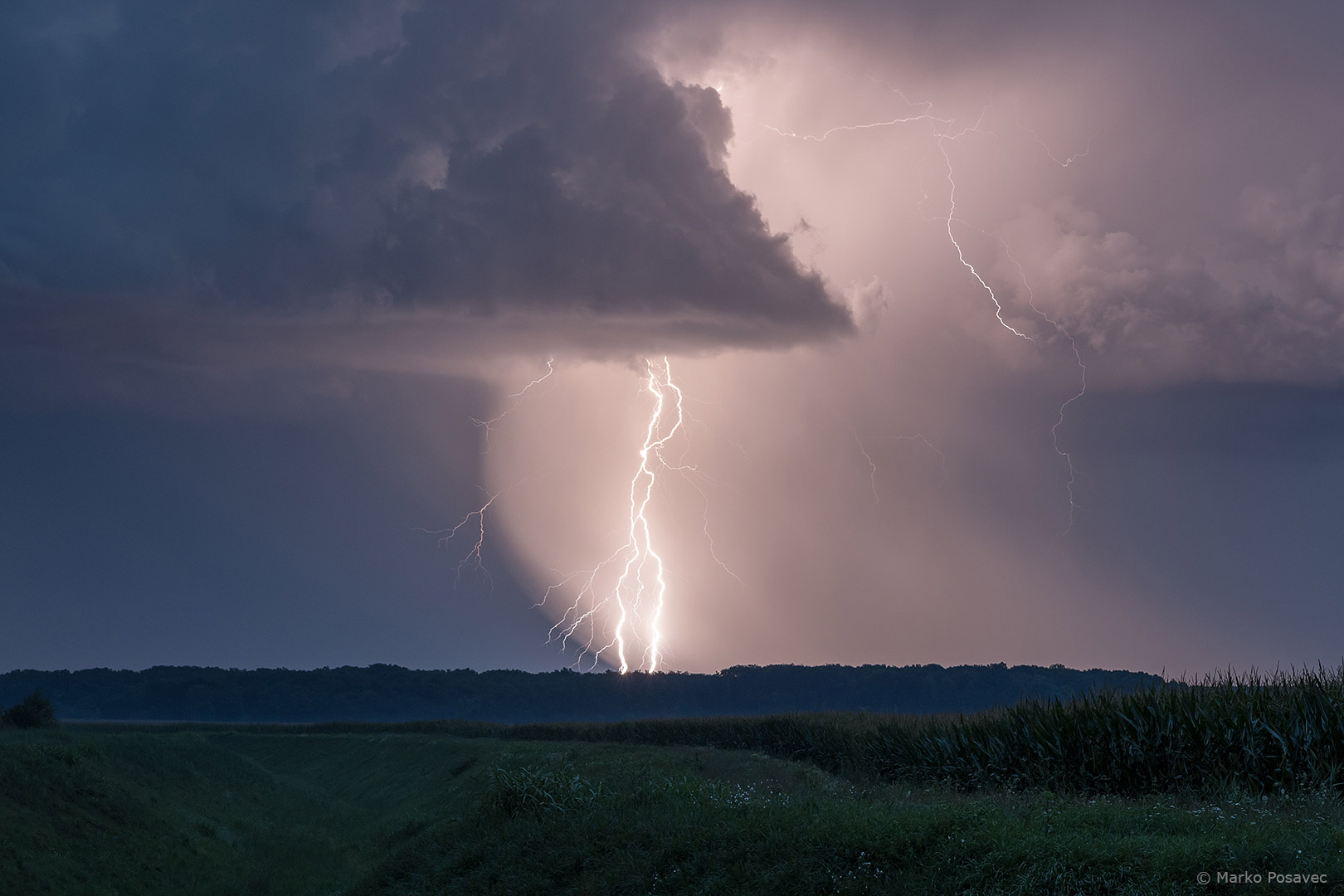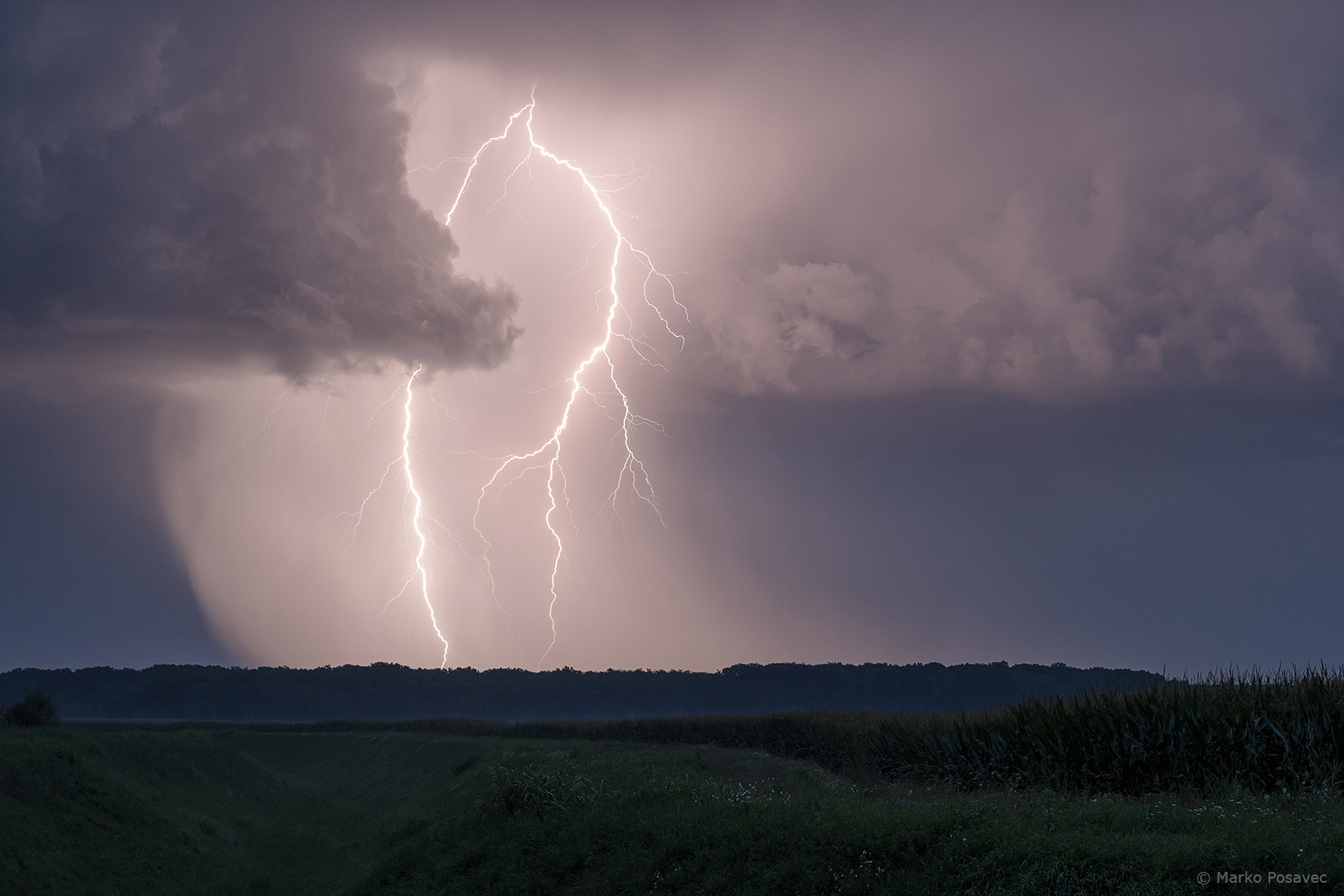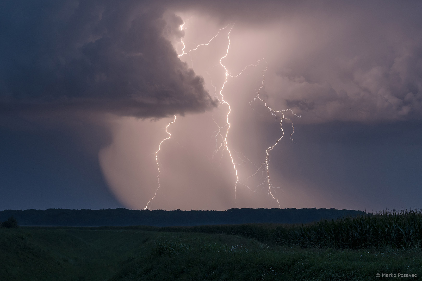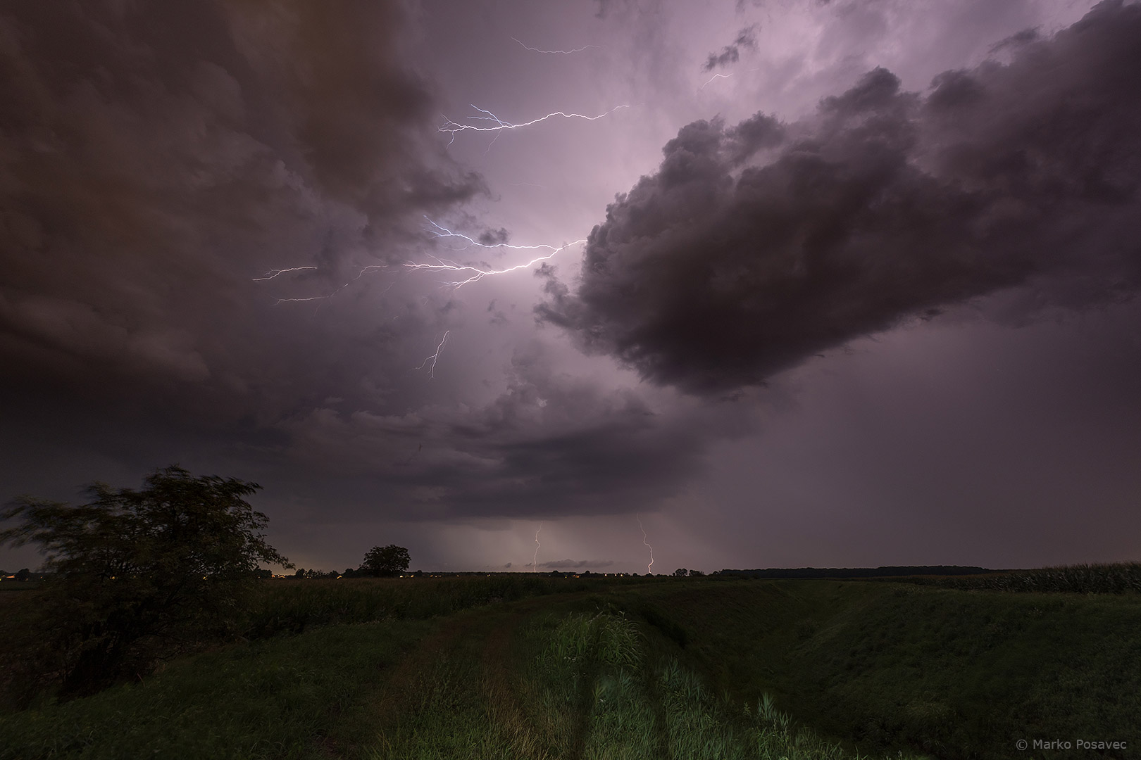 S druge strane već je prilazio novi. Bio je malen, s jasno vidljivom oborinskom zavjesom u kojoj su plesale munje. Brzo me zahvatio njegov pljusak pa sam morao pobjeći istočnije. Za to je vrijeme prasnuo nekoliko izuzetnih munja ravno po gradu. Nakon toga se primirio, ali dao mi je jednu ljepoticu za pozdrav.