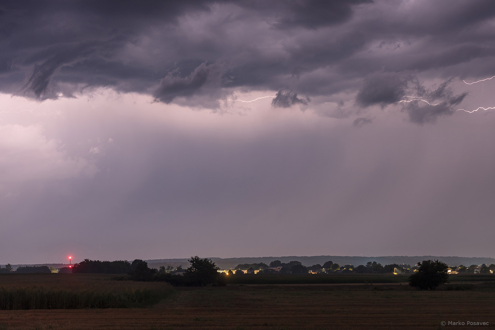 Onda se naglo aktivirao oblak nekoliko kilometara istočnije koji je do tada bio razmjerno pitom. Imao je vrlo jasnu kišnu zavjesu, a munje su srećom frcale ispred nje i dobro su ju osvjetljavale. To mora da je bio jak pljusak. Po zakrivljenosti zavjese može se odrediti smjer kretanja oblaka.